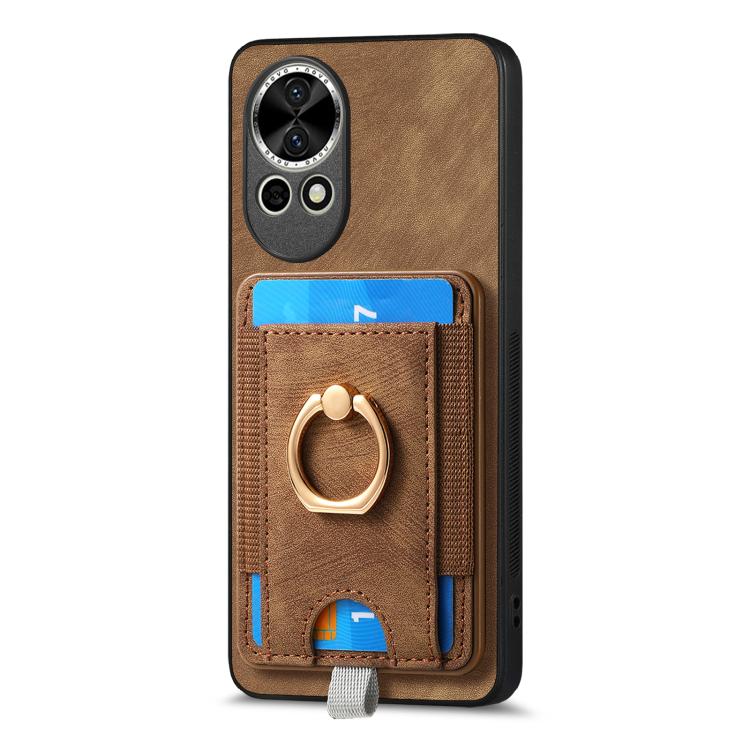 Funda para Teléfono Huawei Nova 13 con Tarjetero y Anillo Tacto de Piel (Morado)