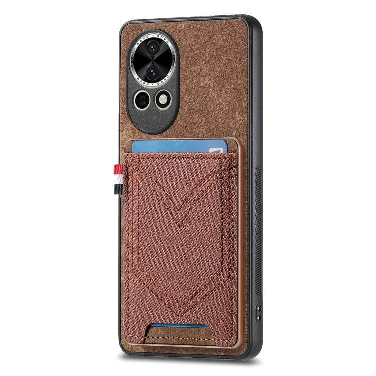 Funda de Piel con Textura Vaquera para Huawei Nova 13 con Ranura para Tarjetas (Marrón)