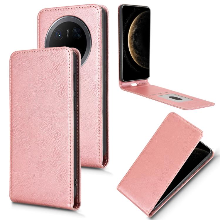 Funda de Cuero con Tapa Vertical Magnética para Huawei Mate 70 Pro/70 Pro+ (Oro Rosa)