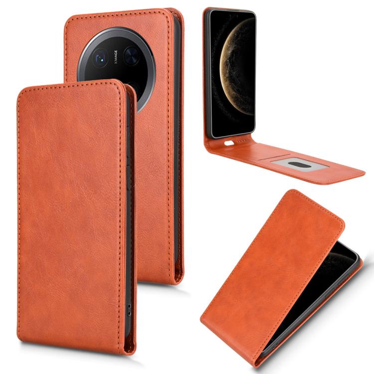 Funda de Cuero con Tapa Vertical Magnética para Huawei Mate 70 Pro/70 Pro+ (Marrón)