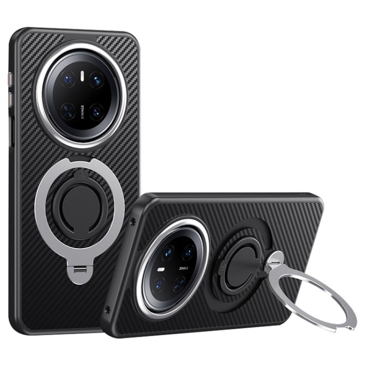 Funda Fibra de Carbono Magsafe Huawei Mate 70 con Soporte Giratorio 360° (Negra)