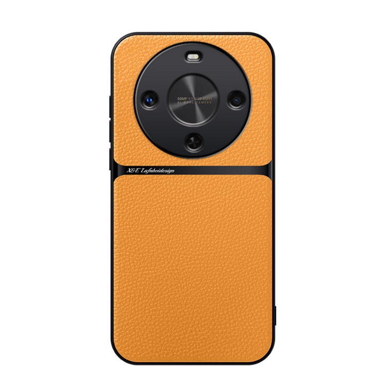 Funda para Huawei Mate 60 Pro de Piel de Lichi con Cobertura Total Magnética y Antigolpes (Amarilla)