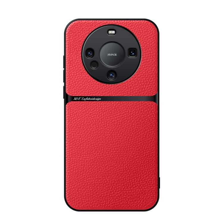 Funda para Teléfono Huawei Mate 60 Piel de Lichi Cobertura Total Magnética a Prueba de Golpes (Roja)