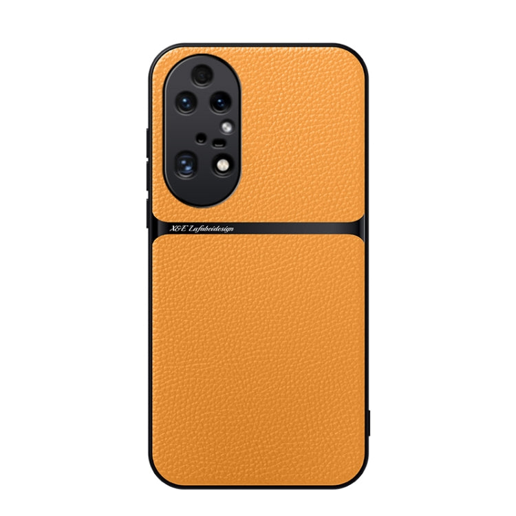 Funda para Teléfono Huawei Pura 70 Piel de Lichi Cobertura Total Magnética Golpes (Amarilla)