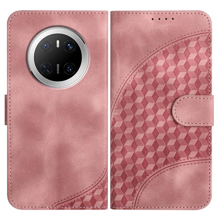 Funda de Cuero con Relieve Cabeza de Elefante para Huawei Mate 70 Pro y Mate 70 Pro+ con Cordón (Rosa)