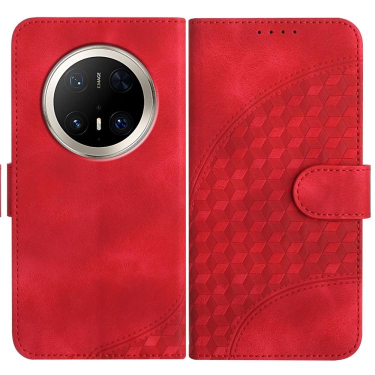 Funda de Cuero con Tapa y Tacto de Piel Cúbica para Huawei Mate 70 Pro y Mate 70 Pro+ (Roja)