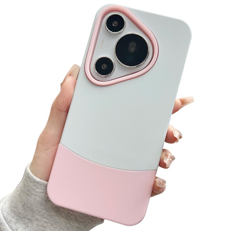 Funda híbrida TPU y Policarbonato 2 en 1 para Huawei Pura 70 Pro y Pura 70 Pro+ (Plateada y Rosa)