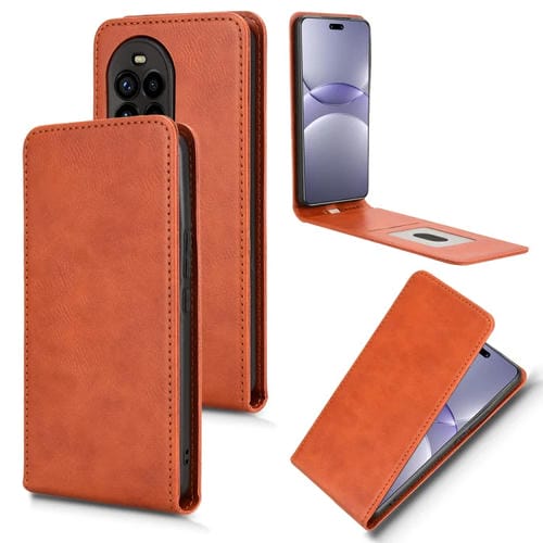 Funda de Cuero con Tapa Vertical Magnética para Huawei Nova 13 Pro (Marrón)