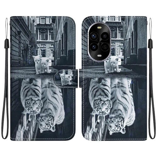 Funda de Cuero Huawei Nova 13 Pro con Dibujo de Colores y Textura de Cristal (Reflejo de Gato y Tigre)