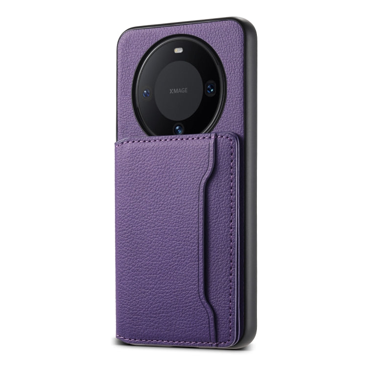 Funda para Huawei Mate 60 con Diseño de Bolsa para Tarjetas y Textura de Pantorrilla (Púrpura)