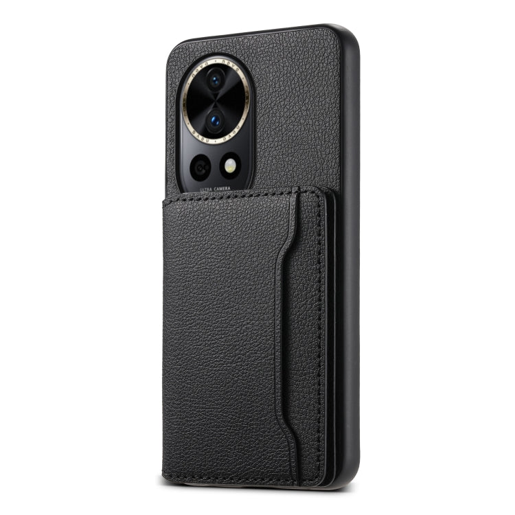 Funda para Huawei Nova 11 con Diseño Bolsa para Tarjetas y Textura de Becerro (Negro)