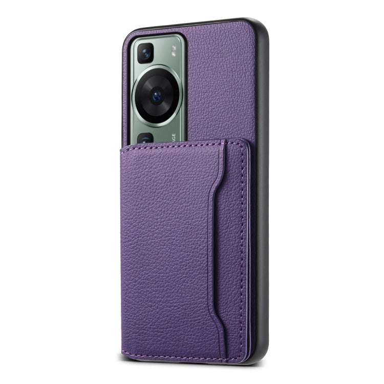 Funda para Teléfono Huawei P60 con Diseño Bolsa de Tarjeta y Textura de Pantorrilla (Púrpura)