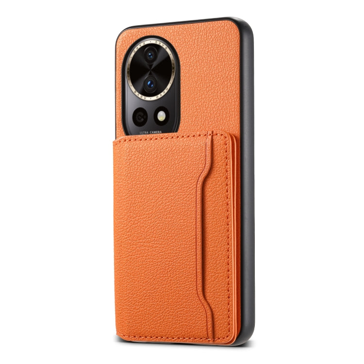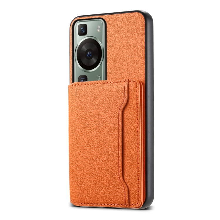 Funda para Huawei P60 con Diseño de Bolsa de Tarjeta y Textura de Pantorrilla (Naranja)