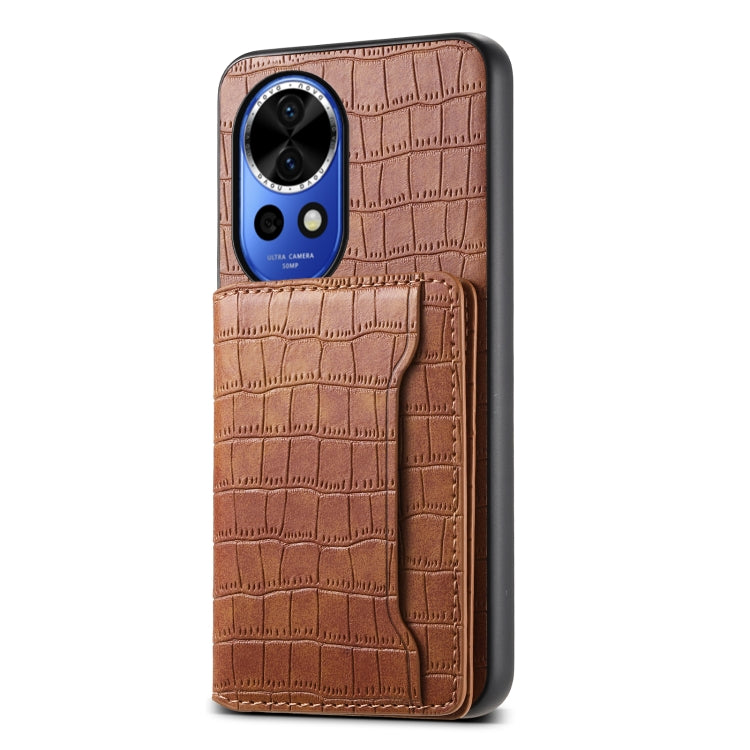 Funda para Huawei Nova 12 con Diseño de Bolsa para Tarjetas y Textura de Cocodrilo (Marrón)