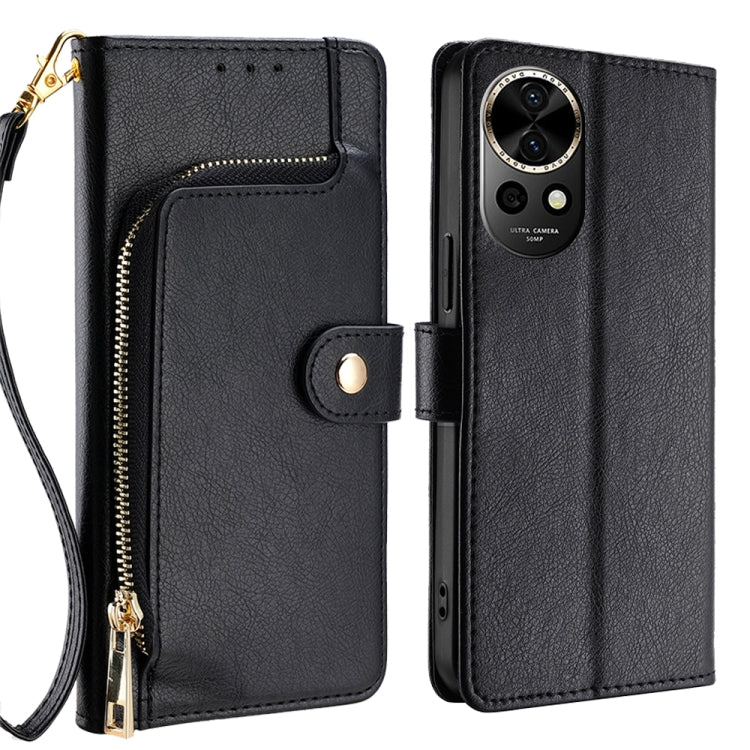 Funda de Cuero para Huawei Nova 12 5G con Bolsa y Cremallera (Negro)