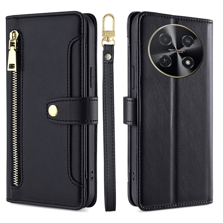 Funda de Cuero para Huawei Nova 12I 4G con Billetera, Cremallera y Textura de Oveja (Negro)