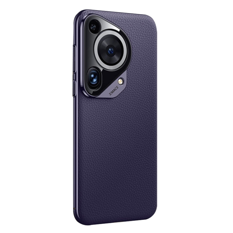Funda de Cuero Genuino Huawei Pura 70 Ultra Litchi Texture para Teléfono (Púrpura Oscuro)