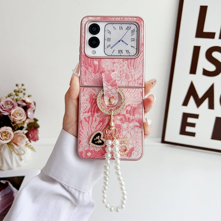 Funda para Teléfono Huawei Nova Flip con Cobertura Total Bordado Cadena y Anillo (Rosa)