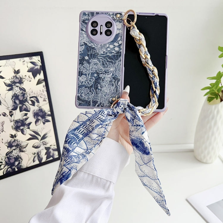 Funda para Teléfono Huawei Mate X3/X5 Bordado Diy Cobertura Total con Bufanda y Pulsera (Azul)