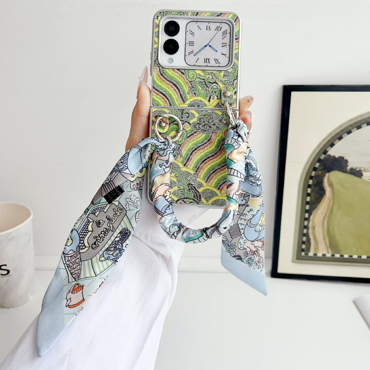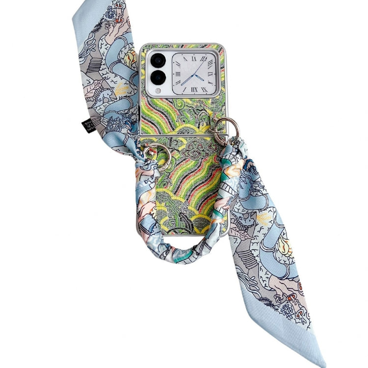 Funda para Teléfono Huawei P50 Pocket Bordado Nubes Cobertura Total con Bufanda y Pulsera (Verde)