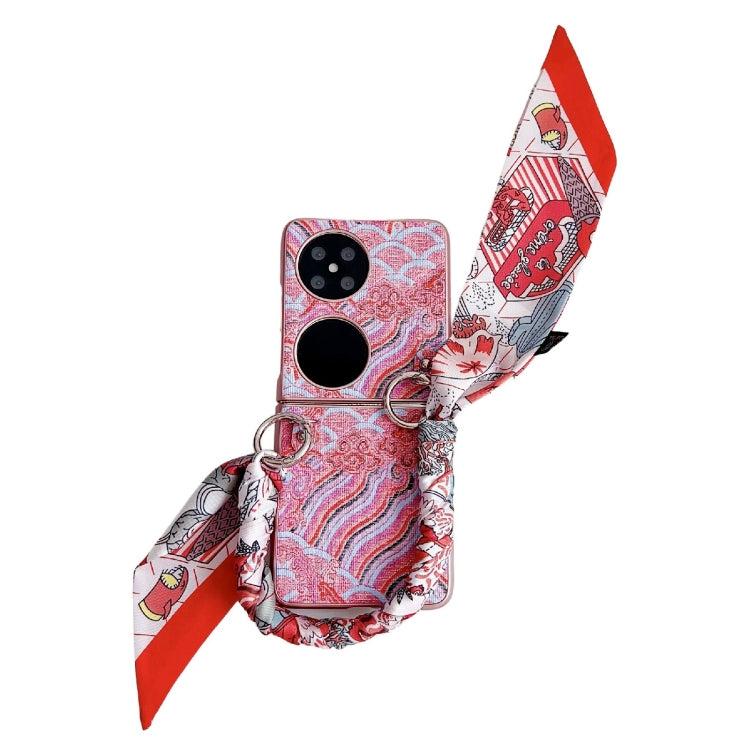 Funda para Teléfono Huawei P50 Pocket con Bordado de Nubes Propicias y Cobertura Total (Roja)