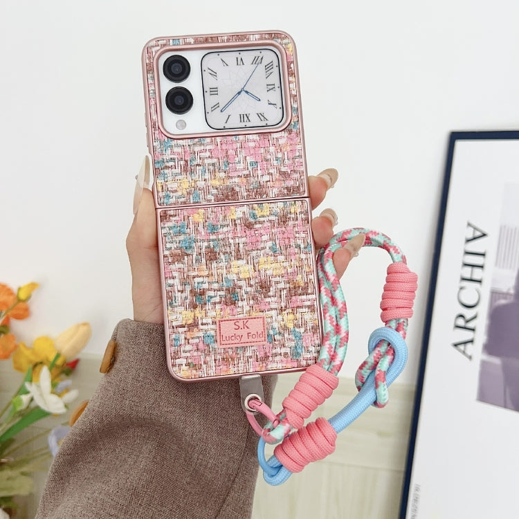 Funda para Teléfono Huawei Nova Flip con Textura de Tejido y Correa (Rosa)