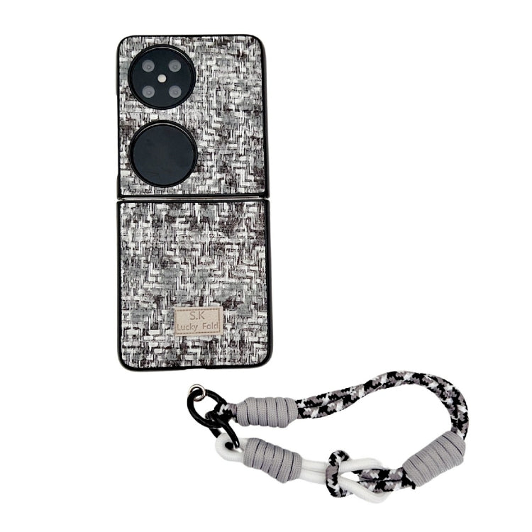 Funda para Teléfono Huawei P50 Pocket con Bordado de Nubes Propicias y Cobertura Total (Gris)