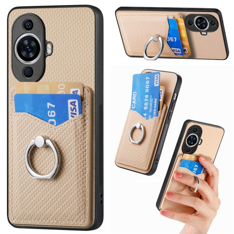 Funda para Huawei Nova 11 con Anillo y Billetera para Tarjeta de Fibra de Carbono (Caqui)