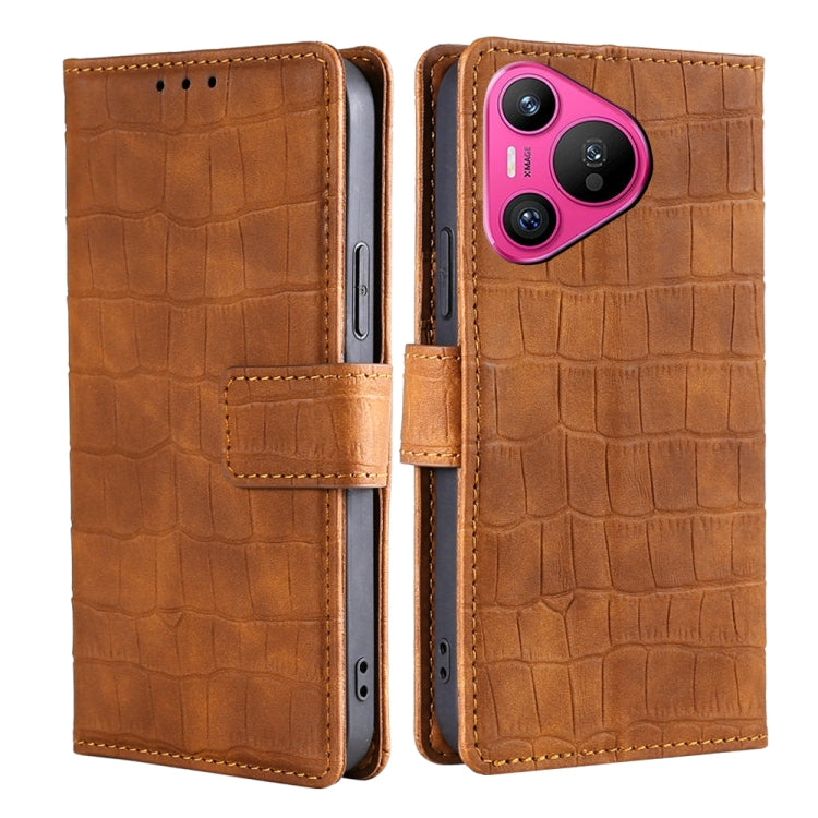 Funda para Huawei Pura 70 Pro y 70 Pro + 5G de Cuero con Cierre Magnético y Piel de Cocodrilo (Marrón)