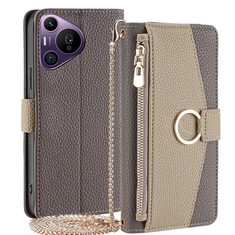 Funda para Huawei Pura 70 Pro / 70 Pro + 5G de Cuero con Textura Litchi Cruzada (Gris)