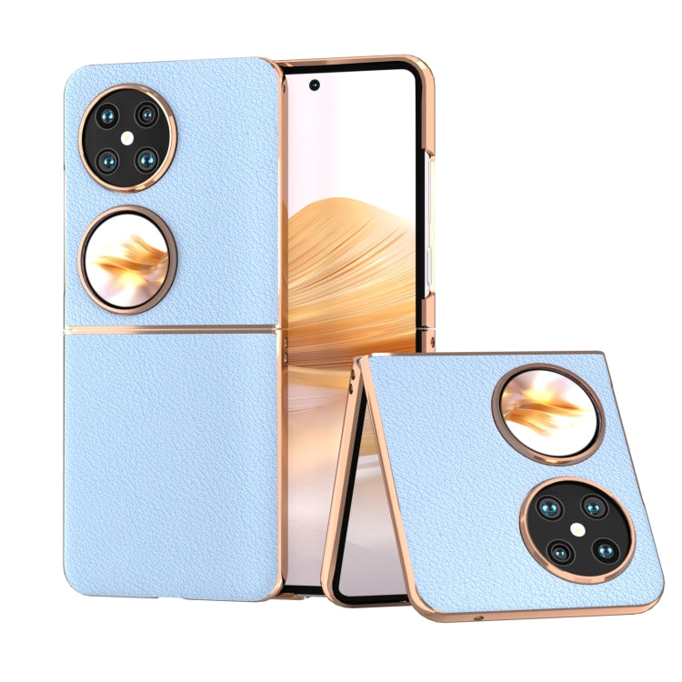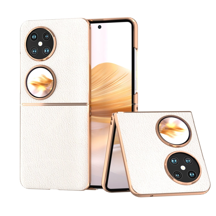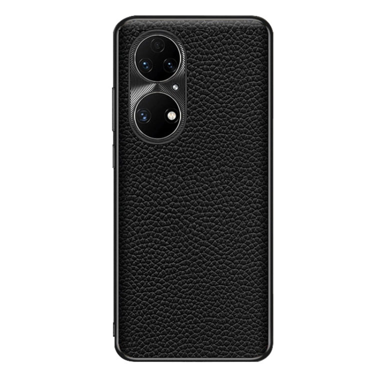 Funda para Teléfono Huawei P50 con Textura Litchi de Cuero Genuino (Negro)