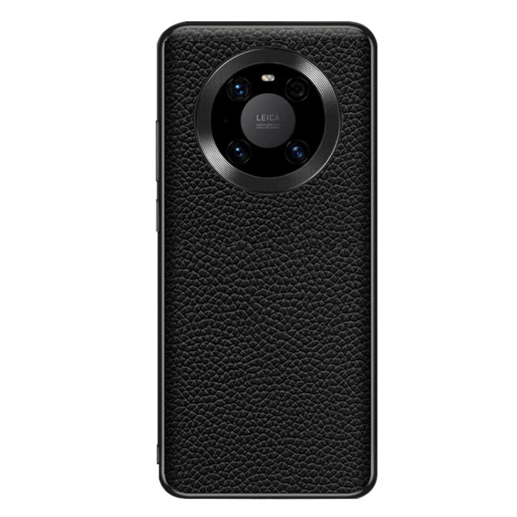 Funda para Huawei Mate 40 Pro con Textura Litchi de Cuero Genuino (Negro)