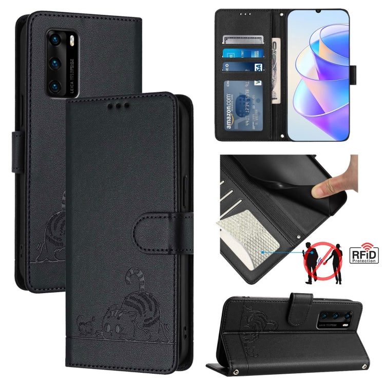Funda para Huawei Nova 6 Se de Cuero RFID con Patrón en Relieve Cat Rat y Cordón (Negro)