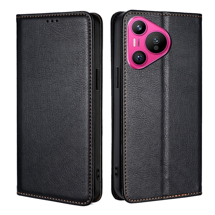 Estuche para Huawei Pura 70 de Cuero Magnético Color Sólido y Aceite Brillante (Negro)