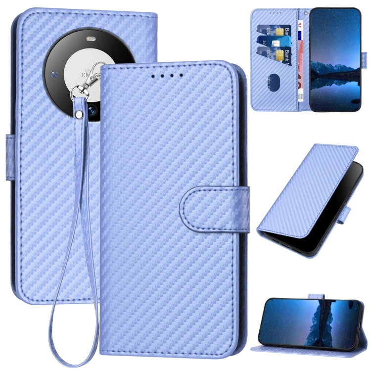 Funda de Cuero para Huawei Mate 60 Yx0070 con Hebilla de Fibra de Carbono y Cordón (Azul Claro)