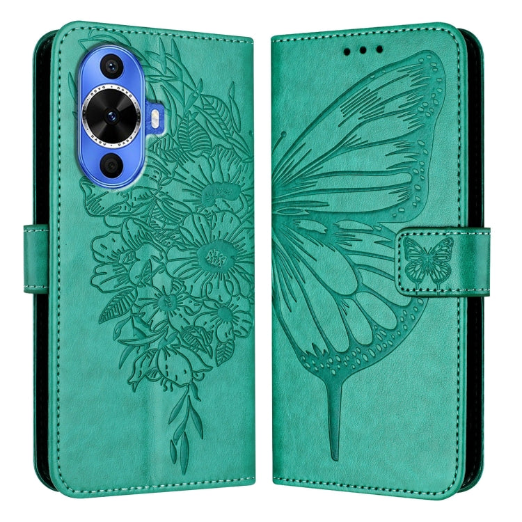 Funda de Cuero para Huawei Nova 12S 4G con Mariposa en Relieve (Verde)