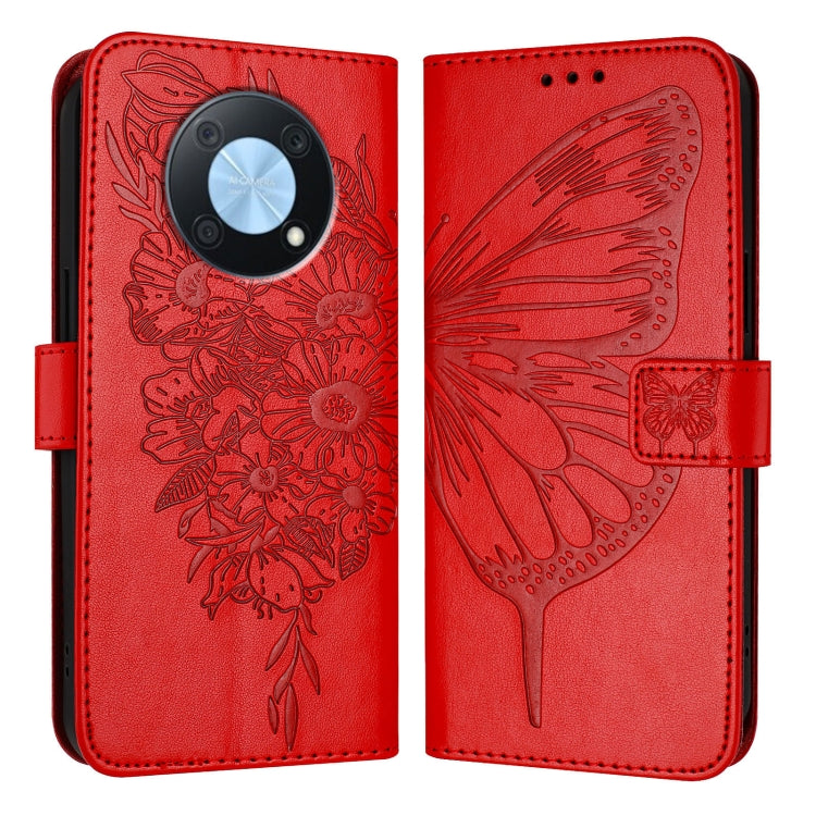 Funda de Cuero para Huawei Enjoy 50 Pro 4G y Nova Y90 con Mariposa en Relieve (Rojo)