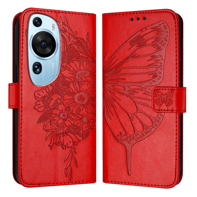 Funda de Cuero para Huawei Pura 70 Pro con Mariposa en Relieve (Rojo)