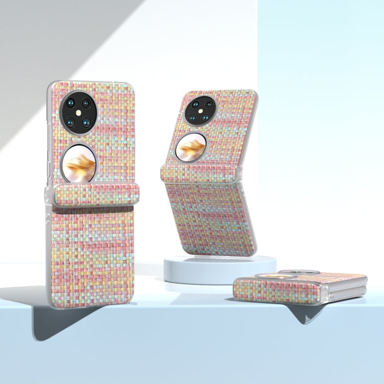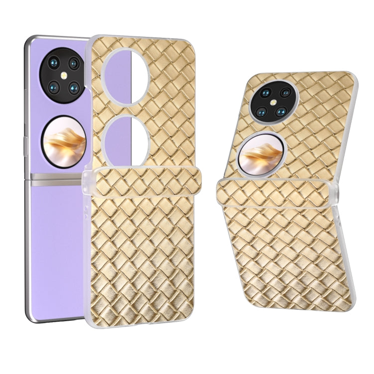 Funda 3 en 1 para Huawei Pocket 2 de PU con Marco Translúcido Esmerilado y Textura Tejida (Dorado)