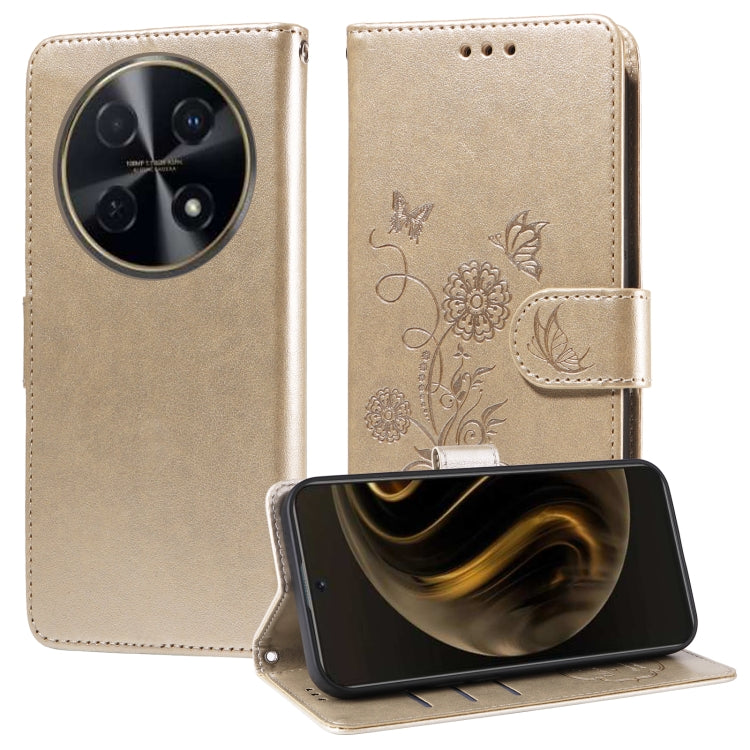 Funda de Cuero Huawei Nova 12 Se 4G con Diseño de Mariposas y Flores en Relieve (Oro Rosa)