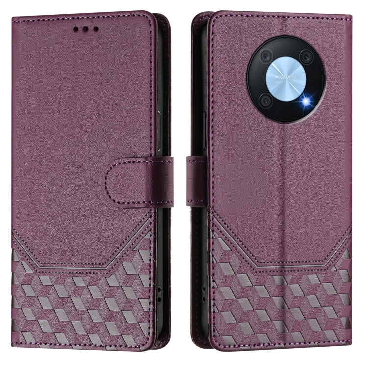 Funda de Cuero Rfid con Relieve en Panal para Huawei Nova 9 (Violeta)