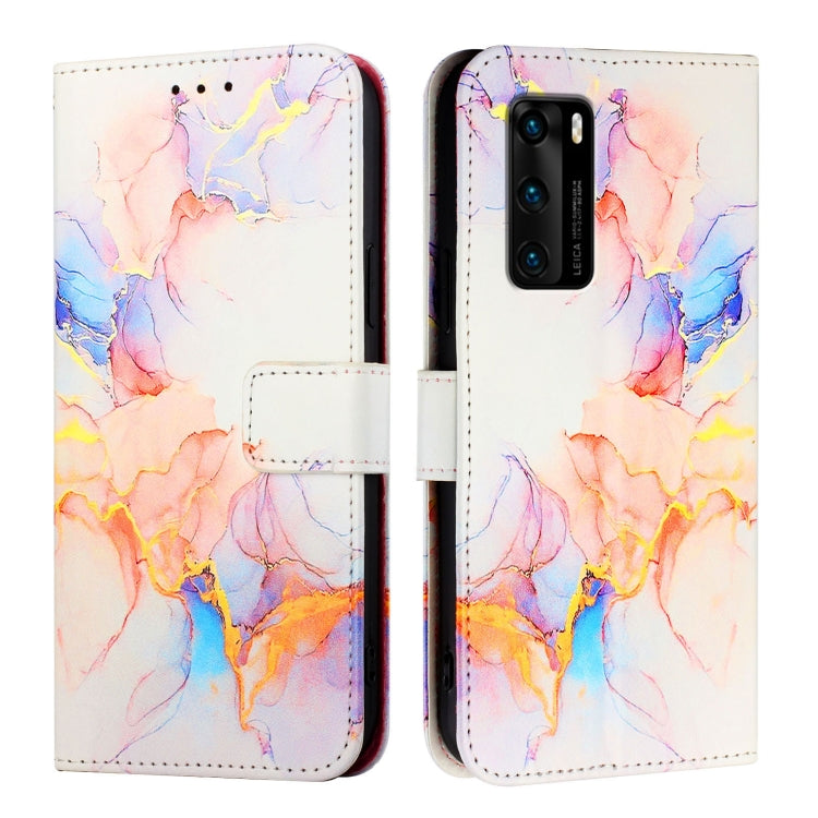 Funda de Cuero con Tapa para Huawei P40 Pt003 con Patrón de Mármol (Rosa Púrpura Dorado)