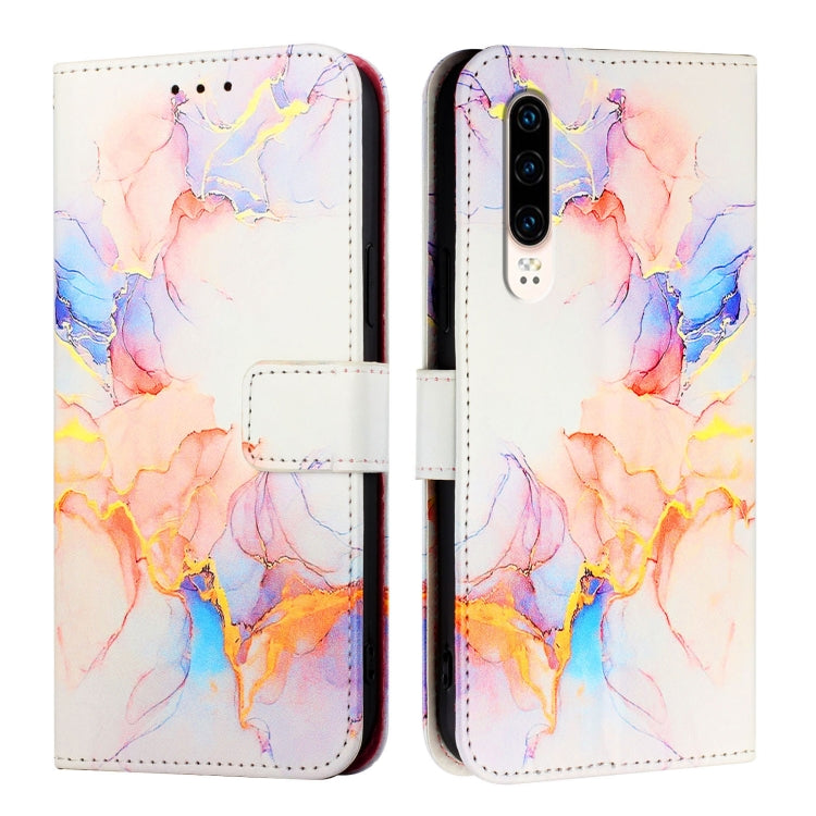 Funda de Cuero con Tapa para Huawei P30 Pt003 Diseño Mármol (Rosa, Morado y Dorado)