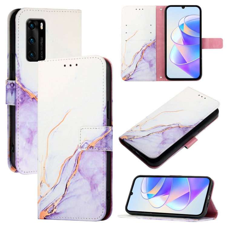 Funda de Cuero para Huawei P40 Pt003 con Tapa y Patrón de Mármol (Ls006 Blanco Púrpura)