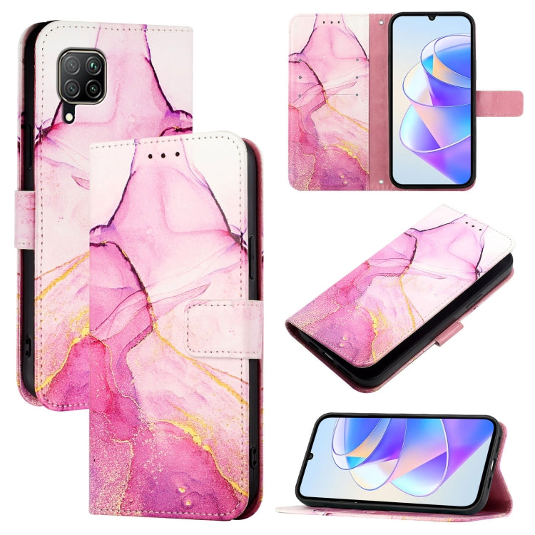 Funda de Cuero con Tapa para Huawei P40 Lite y Nova 6 Se Pt003 con Patrón Mármol (Rosa Púrpura Dorado)