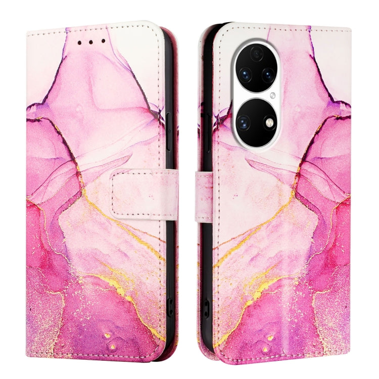 Funda de Cuero para Huawei P50 Pro Pt003 con Tapa y Patrón de Mármol (Rosa Púrpura Dorado)