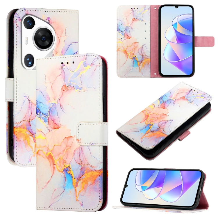 Funda de Cuero con Tapa para Huawei Pura 70 Pro / 70 Pro + Pt003 con Patrón Mármol (Blanco)