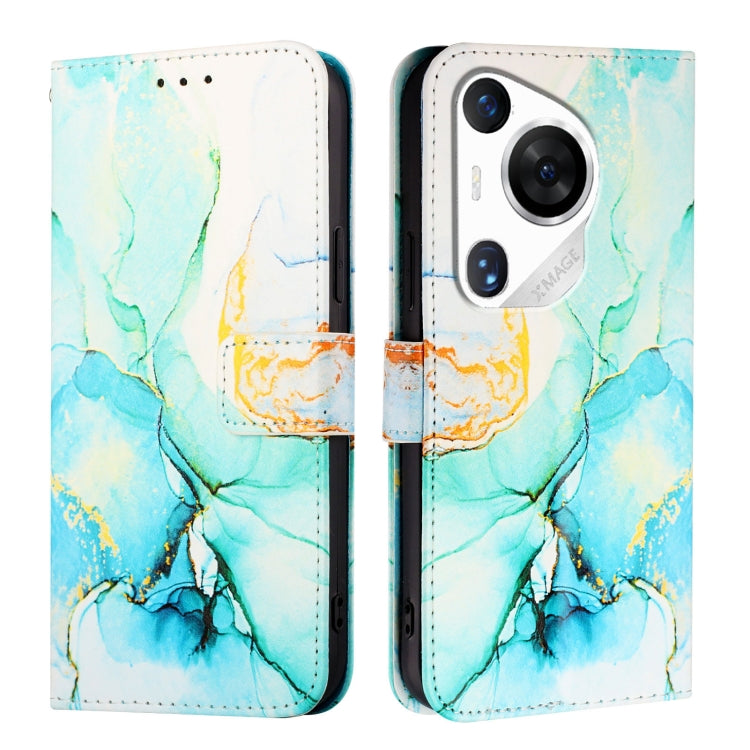 Funda de Cuero con Tapa para Huawei Pura 70 Pro / 70 Pro + Pt003 con Patrón de Mármol (Verde)