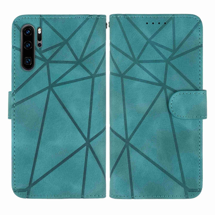 Funda de Cuero para Huawei P30 Pro con LĂneas GeomĂ©tricas (Verde)