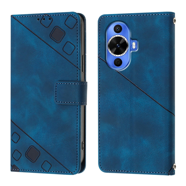 Funda de Cuero Skin Feel para Huawei P60 y P60 Pro en Relieve (Azul)